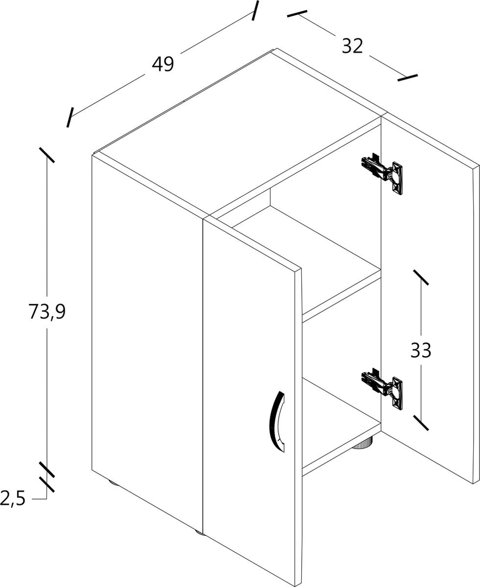 - Dimensioni circa A. 74 x L. 49 x P. 34 cm L'armadio da ufficio con un ripiano variabile e due scomparti offre spazio sufficiente per circa 14 raccoglitori. 14 raccoglitori ad anelli. L'armadio può essere combinato con altri mobili della serie .