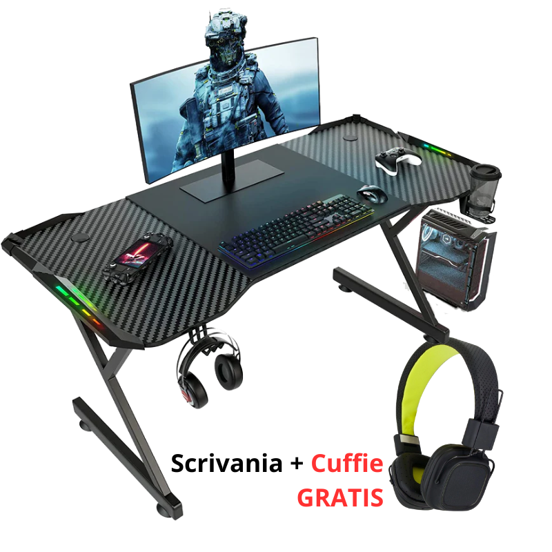Scrivania Gaming Superficie in carbonio 120cm x 60cm CON luci laterali