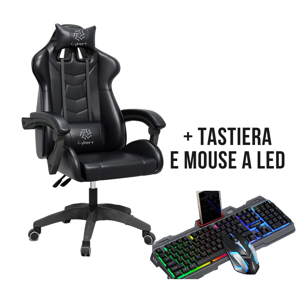Sedia da Gaming / Ufficio RECLINABILE ERGONOMICA IN ECOPELLE CON TASTIERA E MOUSE A LED INCLUSO